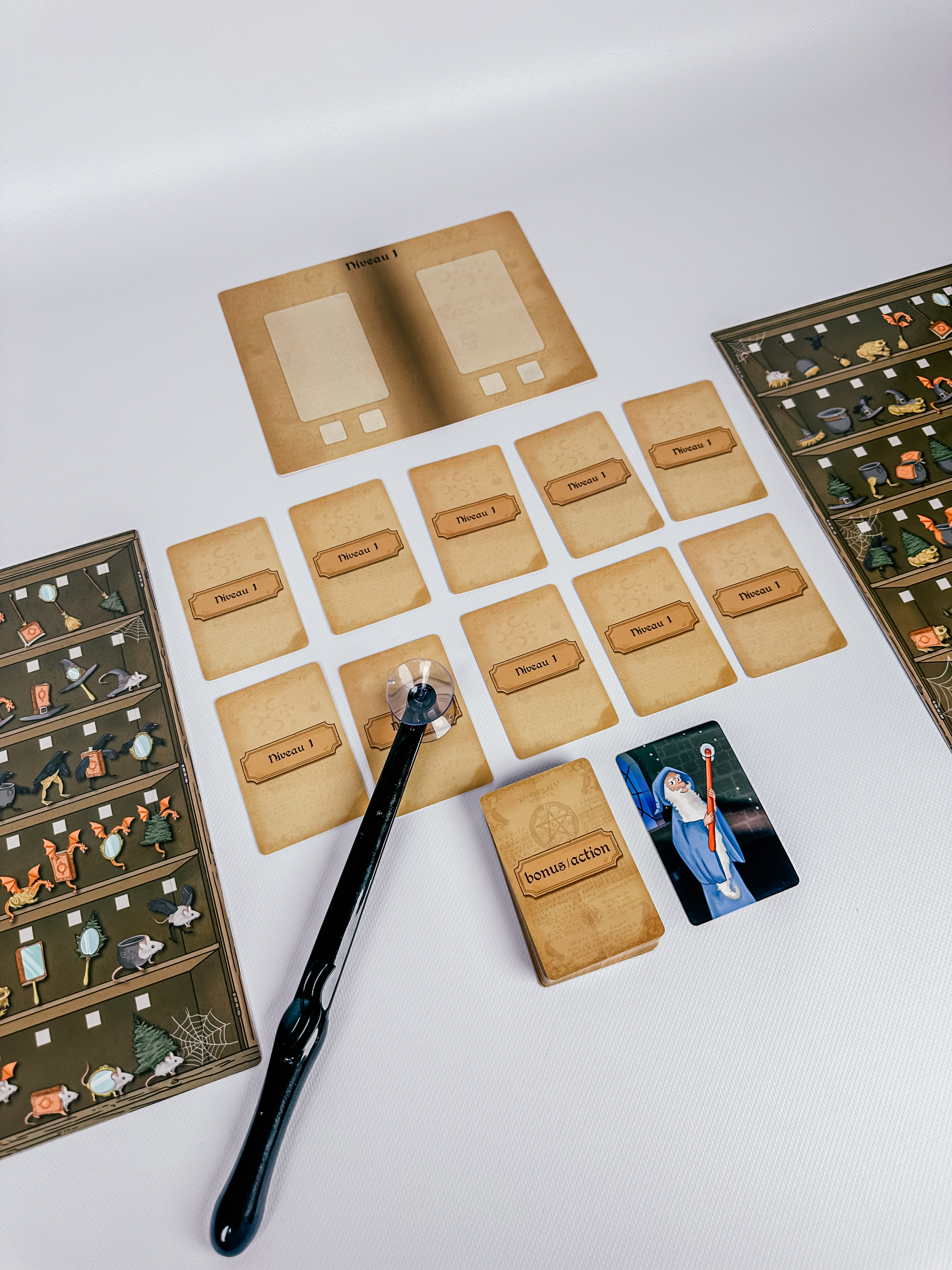 Principe : attraper deux cartes, fusionner les syllabes selon la consigne (ex. : 1re + 1re, 1re + 2e…), créer un nouveau mot et remplir son armoire magique !